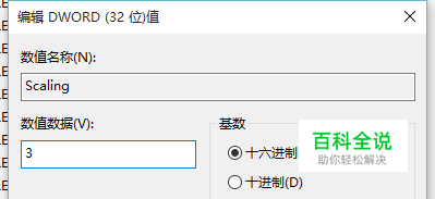 在找到的Scaling键值上双击打开编辑框,将 4 改成 3。如下图。