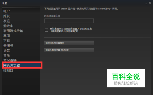 第一步:打开steam的设置界面,选择“网页浏览器”然后点击“删除浏览器缓存”。近期的steam错误代码103直接查看steam错误代码118第一步,即可解决问题