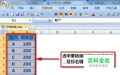 第一种,转置粘贴法。 操作方法如下: 1)选中数据区域,复制;