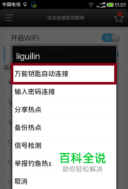 其次,wifi万能钥匙安装完成之后,打开wifi万能钥匙,出现的界面会显示周围所有的wifi热点,此处补充一点大部分需要连接公共wifi的状况是酒店、咖啡馆等公共场所,请不要尝试连接私人wifi。接下来任意选择一个wifi热点,然后选择“万能钥匙自动连接”,系统将会自动开始连接,如果成功,将会自动连接此wifi,如果不成功,请重新选择wifi热点。