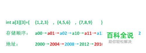 但是我么要注意,这个3行3列的二维数组是逻辑上的概念,能形象的表示出行列关系。而在内存中,各元素是连续存放的,不是二维的,是线性的,这点大家一定要清楚。