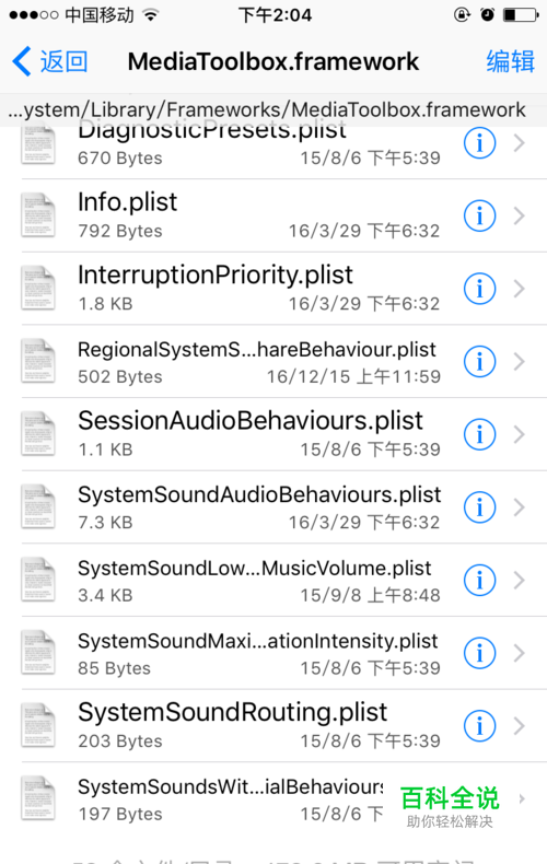 步骤2,打开ifile,按照路径找到文件。路径为/System/Library/Frameworks/MediaToolbox.framework/。文件名为regionalsystemsoundsthatsharebehavior.plist。这个名字可以翻译成区域化系统共享声音行为。意思就是按照区域划分不同的声音控制行为,如中国可以关闭拍照声音,韩国日本不可以。所以声音行为的控制是按照地域区分。