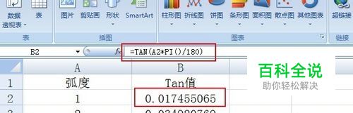 绘制正切曲线:在A1单元格中输入“弧度”,在B1单元格中输入“Tan值”,从A2列起依次输入数字“1,2,3,4,...,360”,在B2列中公式“=tan(A2*pi()/180)”回车,然后将鼠标放在单元格的右下角,当鼠标变为小黑十字样时,双击填充B1列至B360列。