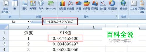 绘制正弦曲线:由于我们要生成曲线,因此原始数据会比较多,建议利用公式来实现数据的快速输入 。在输入原始数据时,最好以二维表格的样式来表示。利于二维表格能够很好的表达数据之间的关系。我们的目标是首先建立正弦曲线的原始数据,在此我们不可能输入每一个值对应的正弦值,而是只取一些离散的数据点来作为原始数据生成曲线。具体做法:在A1单元格中输入“弧度”,在B1单元格中输入“SIN值”,从A2列起依次输入数字“1,2,3,4,...,360”,在B2列中公式“=sin(A2*pi()/180)”回车,然后将鼠标放在单元格的右下角,当鼠标变为小黑十字样时,双击填充B1列至B360列。