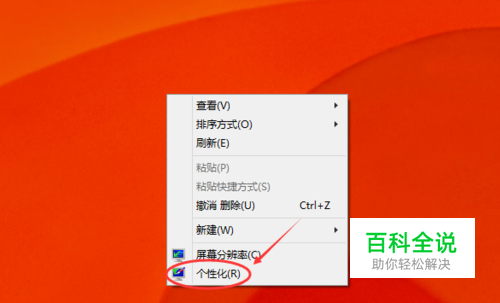 在Win10系统桌面的空白处右键,点击弹出菜单的个性化,如下图所示。