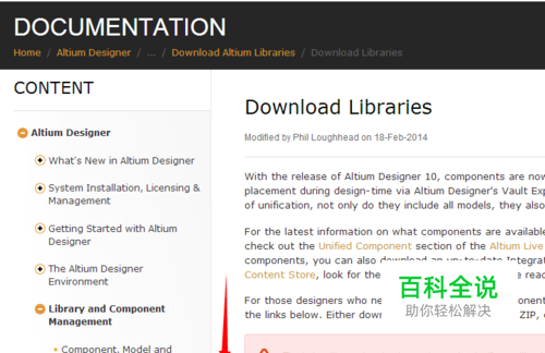 我们需要从官网下载元件库,我们先进入网址,然后向下拉: techdocs.altium.com/display/ADOH/Download+Libraries