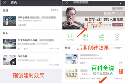 1.扫码后会看到知识店铺的初始状态(图左边) 2.使用管理台提供的各种工具,最后就能呈现想要的效果,参考图右边 下面教大家怎么通过各种工具实现图右的效果