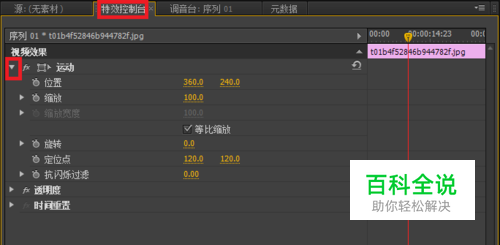 选中要设置的图片,然后选中“特效控制台”,将“位置”选项展开。