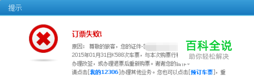 你的身份信息以购买过一张同一车次的火车票,再购买的时候就会提示:订票失败