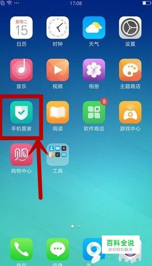 首先打开手机,在手机首页上找到“手机管家”。点击“手机管家”如图