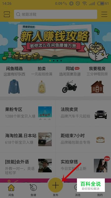 进入闲鱼主界面后,在下方菜单栏中,选择“发布”