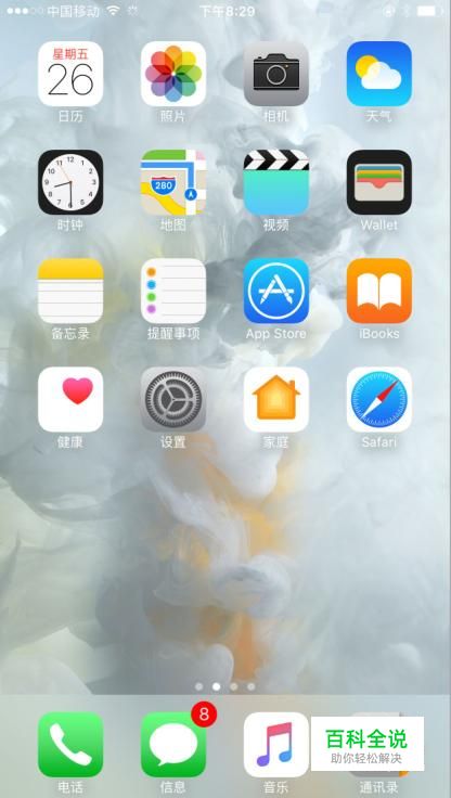 最后返回到手机主屏幕上,就可以看到手机桌面的图片跟你刚才选的图片是一样的,手机桌面就设置好了,如图。