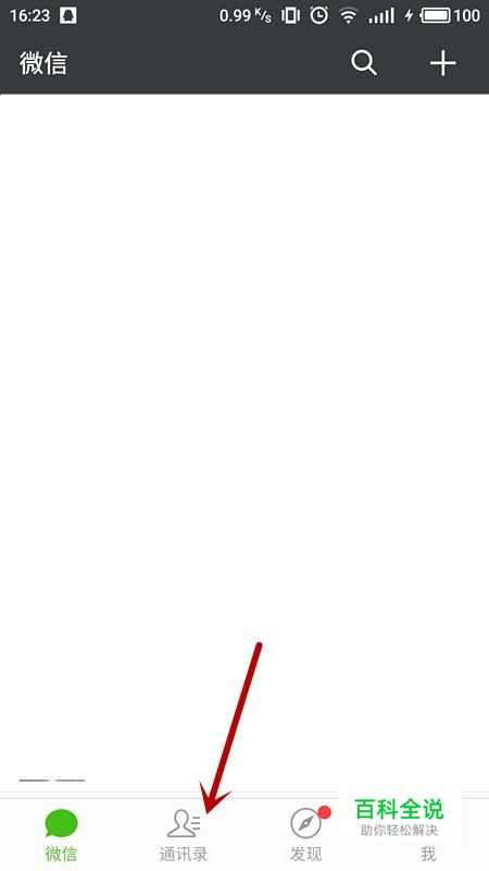 进入微信后,在下方菜单栏中,选择“通讯录”