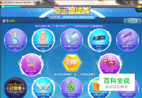 QQ飞车全新版本【幸运魔法阵】,全新的幸运魔法阵使用幸运召唤卡进行召唤,幸运召唤卡不需要购买直接参与QQ飞车的在线活动即可获得!