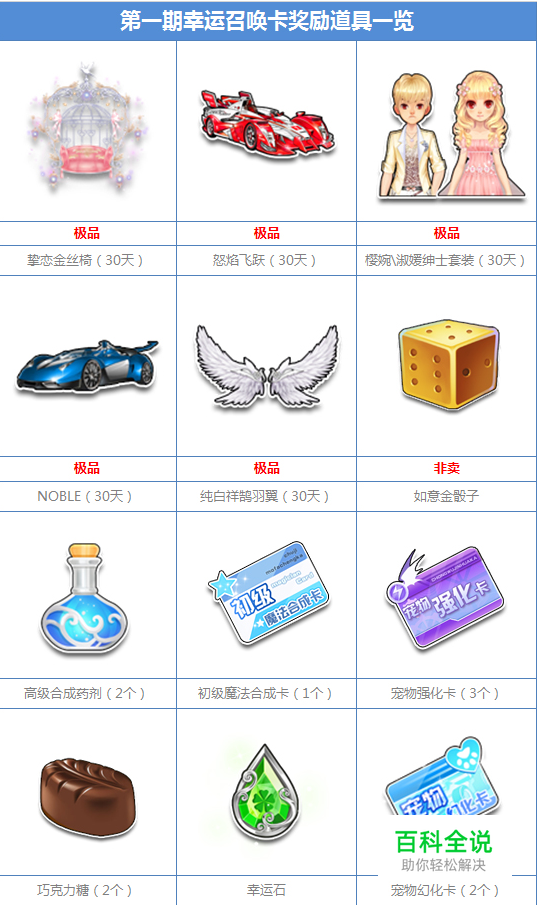 第一期幸运召唤卡奖励: