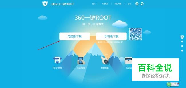 然后进去360一键root官网,进去以后点击“电脑版下载”,下载完以后安装即可。