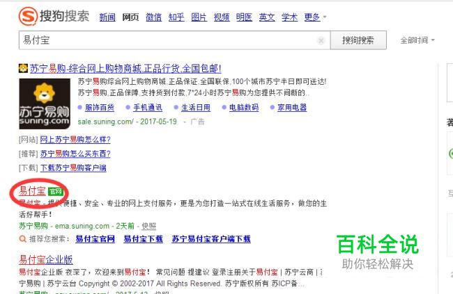 首先,在搜狗搜索里搜索易付宝,选择官网并登陆