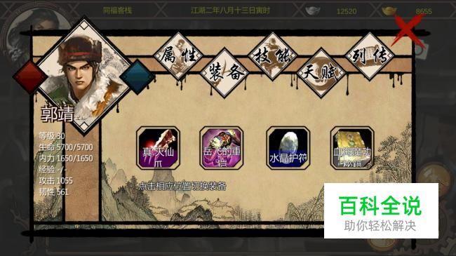 我们准备好洗练书,需要把南山刀法洗掉。由于郭靖的最终的属性相当丰富,所以,基本内功最后也可以洗掉,换成其他的厉害的内功。