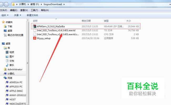 解压后,得到文件夹“APMServ-v5.2.6”,我们打开该文件夹,双击如下图的文件,进行安装过程。