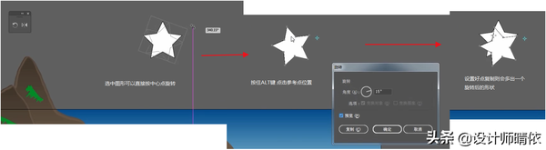 2.单击第一下后,然后按住SHIFT/ SHIFT Alt 键,直接拖动,可以复制并进行45°旋转,过程中还有虚拟形状轮廓出现,方便确认位置。