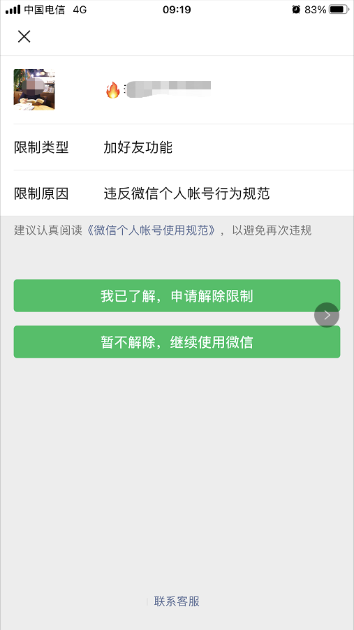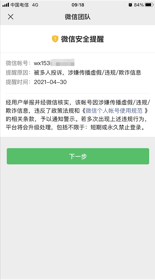 自己是一脸懵逼,没有发信息,没有加好友,没有刷屏,怎么就被多人举报了。结合上次不常用号码被永久封号,有点后怕,赶紧点击下一步,争取快点解封。