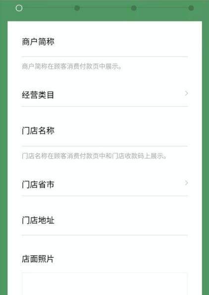第一步、填写【商户简称】【经营类目】【门店名称】【门店省市】【门店地址】【门店照片】【店内照片】【客服电话】