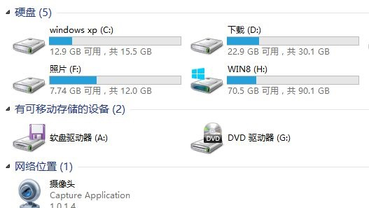 打开安装了软驱的电脑,看到的硬盘分区是C盘、D盘、E盘、F盘。