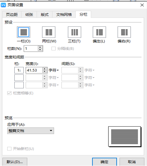在分栏中改为4,点击确定,效果图如下: