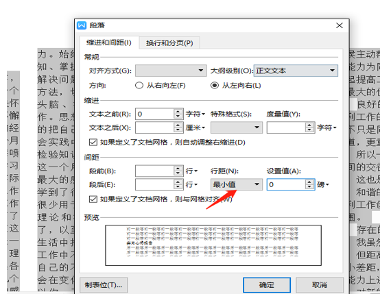 在文本上右击选择段落,在弹出的对话框里,行距栏选择最小值,设置值输入0磅,点击确定: