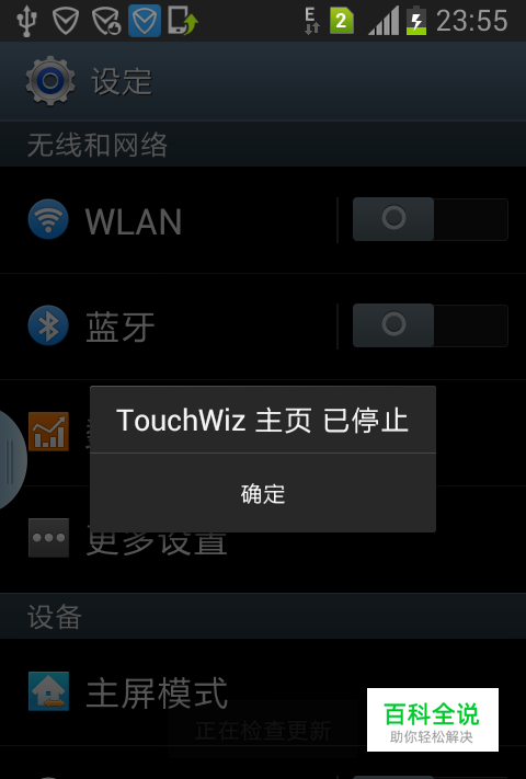 遇到一用户手机出现TouchWiz主页已停止,不断弹出需要确定,无法进行设置。且手机运行缓慢。问缘由,手机系统慢而恢复出厂设置,重启之后就出现该故障。