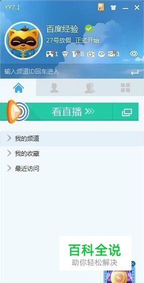 打开YY主页面,进入“我的频道”打开自己的频道