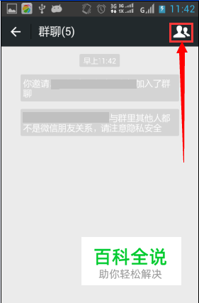 如果想要再次邀请好友进入该群,我们可点击右上角如图显示的 群设置按钮,进入群设置界面。