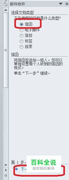 现在开始进行信函的编辑:点击“邮件”选项,选择“开始邮件合并”,在下拉菜单中选择“邮件合并步骤向导”,于是文档右边会出现一个框