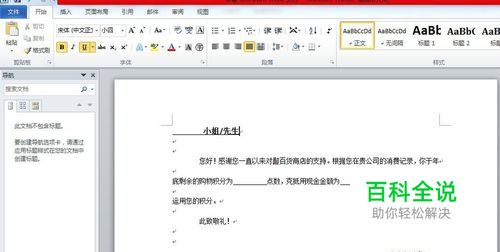 打开word文档信件模板,如果没有模板,自己现场撰写一份,如图:有下划线的地方为我们需要录入的信息。