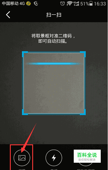 选择后会进入扫码界面,再点左下角的 相册按钮