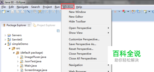 在eclipse 的工具栏中点击“Window”选择 “Preference”