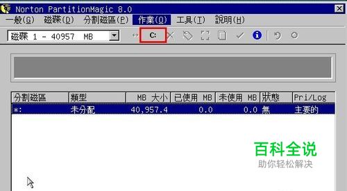 点击进入分区软件后我们就可以进行分区操作了。首先我们需要建立主分区(也就是系统盘所在的分区,通常我们称它为C盘),我们可以点击C符号,也可以通过作业->建立进行操作,两种方法效果都一样,任选其一即可。