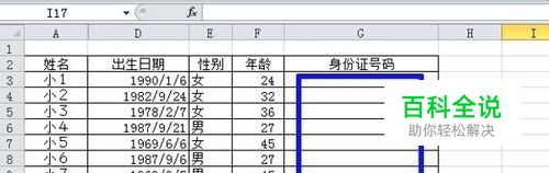 先建立下面的表格,要设置蓝色框区域的单元格的数据有效性,使得输入的身份证号码不出错