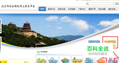 第二步:在北京社保网上服务平台的主页里,单击“个人用户登录”
