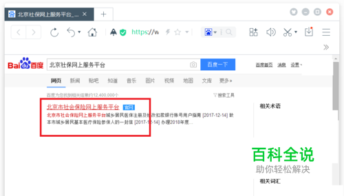 第一步:在搜索栏里搜索“北京社保网上服务平台”,然后点击下面的官网链接。