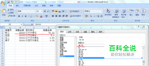 如果在类型文本框中输入“#0!.00,”则单元格中的数据将以十万为单位显示。