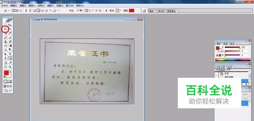 用套索工具分别点击荣誉证件的四个角,将荣誉证件选中。