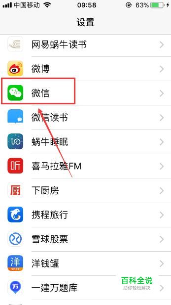 之后想要改变微信的铃音,首先进入到iphone6手机的【设置】页面,,之后下拉页面找到微信图标。