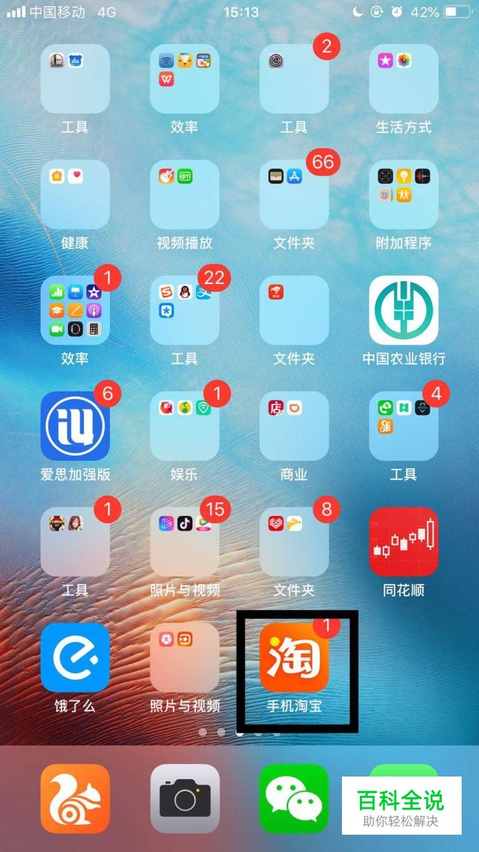 首先在我们的手机桌面上找到淘宝并点击它,如下图所示。