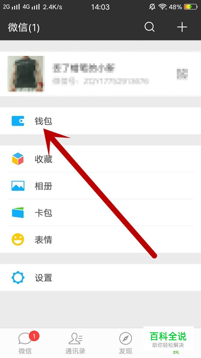进入之后,在“我”页面找到“钱包”选项,点击并进入,如图所示。