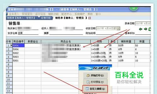管家婆设置页面时需要打开一个已过账的销售单来设置,我们可以找一个含有商品名称比较长的单子来设置,这样才能体现出设置的效果。 打开已过账单据,点打印,选择自定义设置。