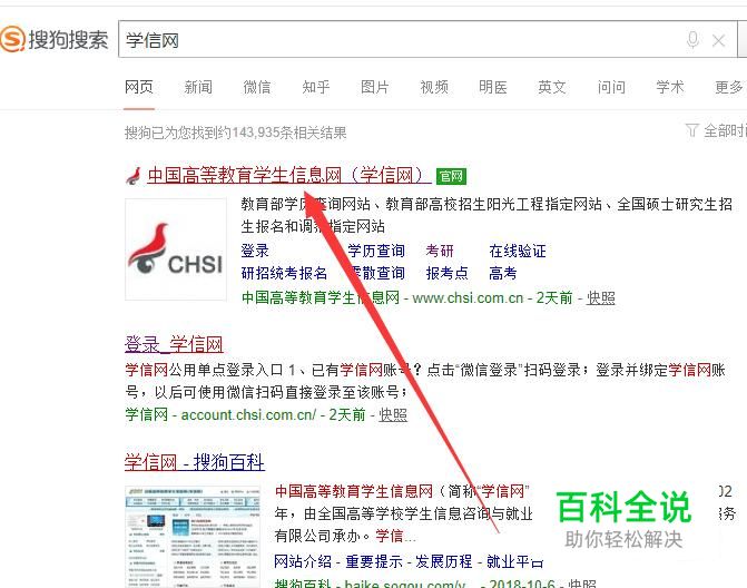进入之后,搜索“学信网”,点击并进入,如图所示。