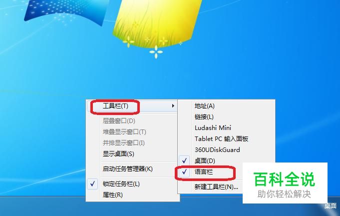 比较常用的方法是,右键单击任务栏,然后如图所示,选择工具栏后,点击勾选上语言栏,此时,输入法就会显示了。