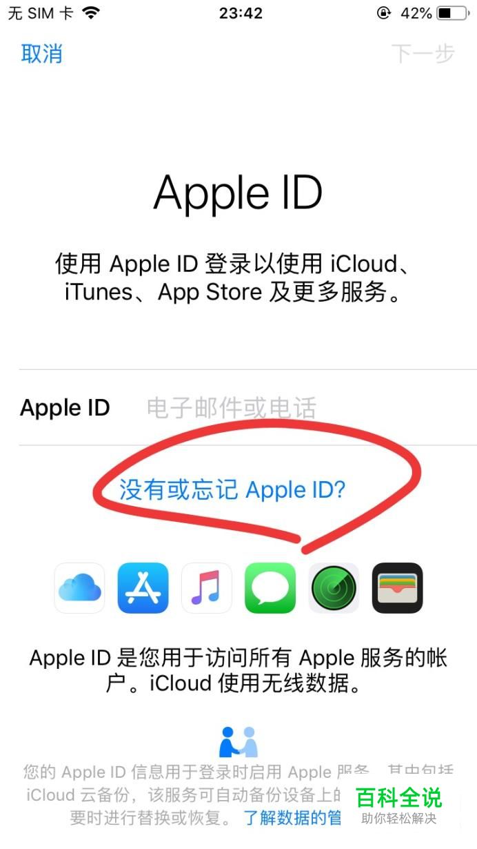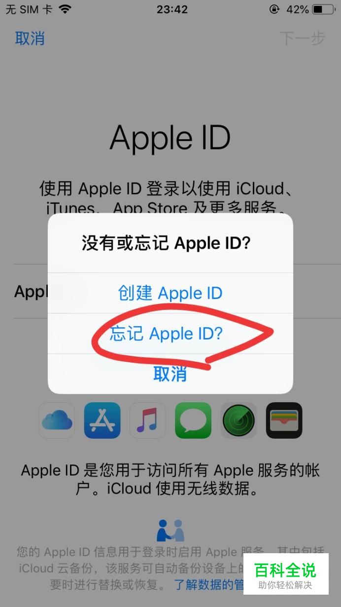 如果是忘记了Apple ID账号,点击下方忘记Apple ID。