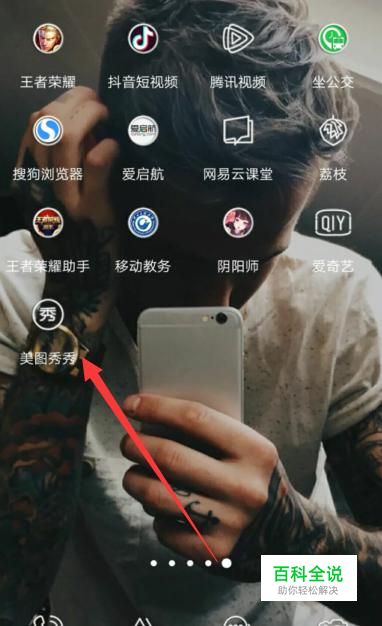 打开手机,找到美图秀秀,点击并进入,如图所示。